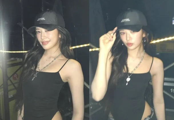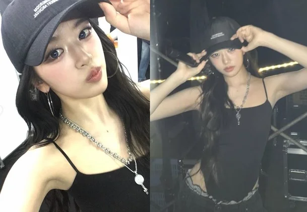 In the released photo, Yujin showed off her chic charm in an all-black outfit. Her sexy appeal, completed by a sleeveless top that highlights her hips and a black cap, catches the eye.
