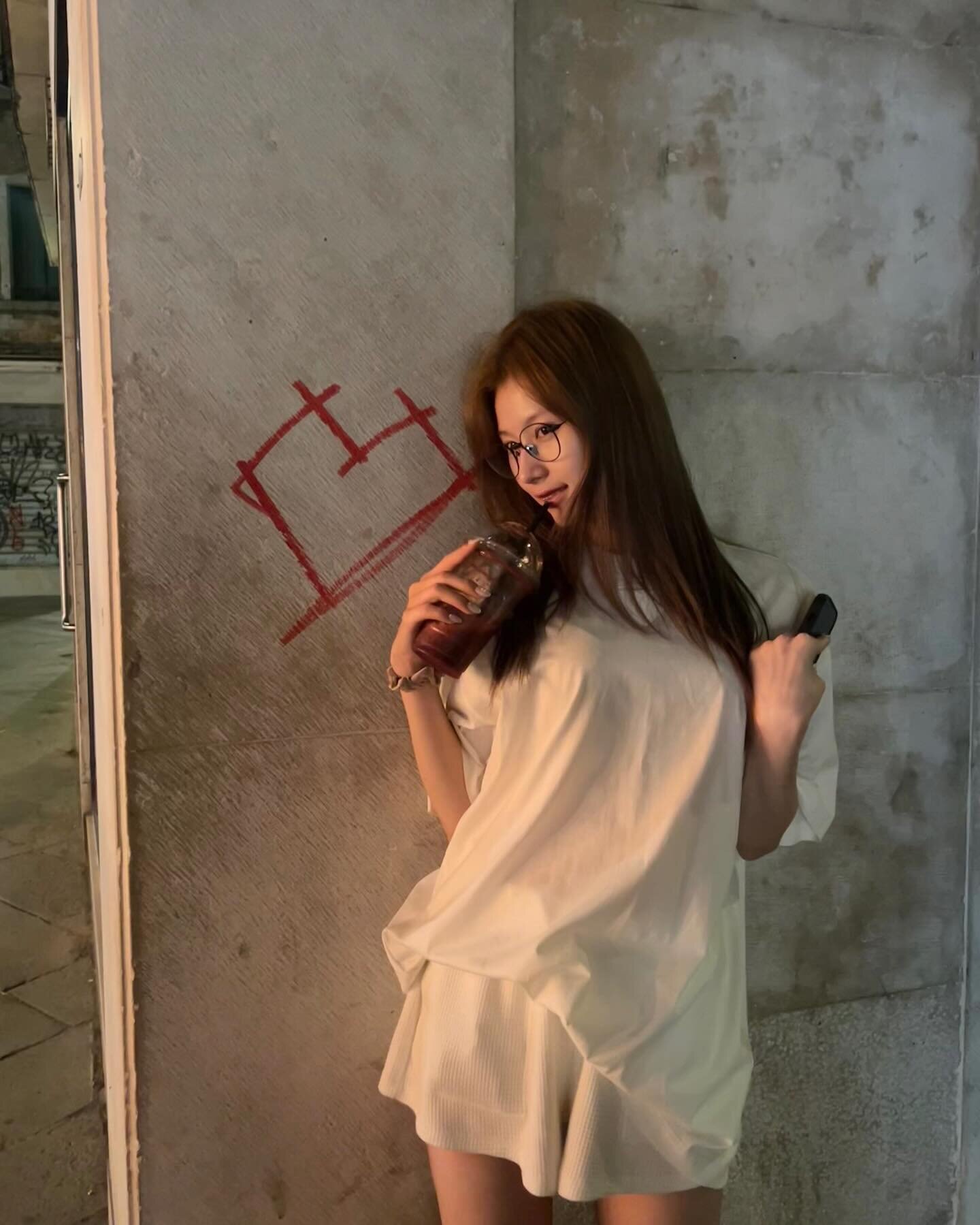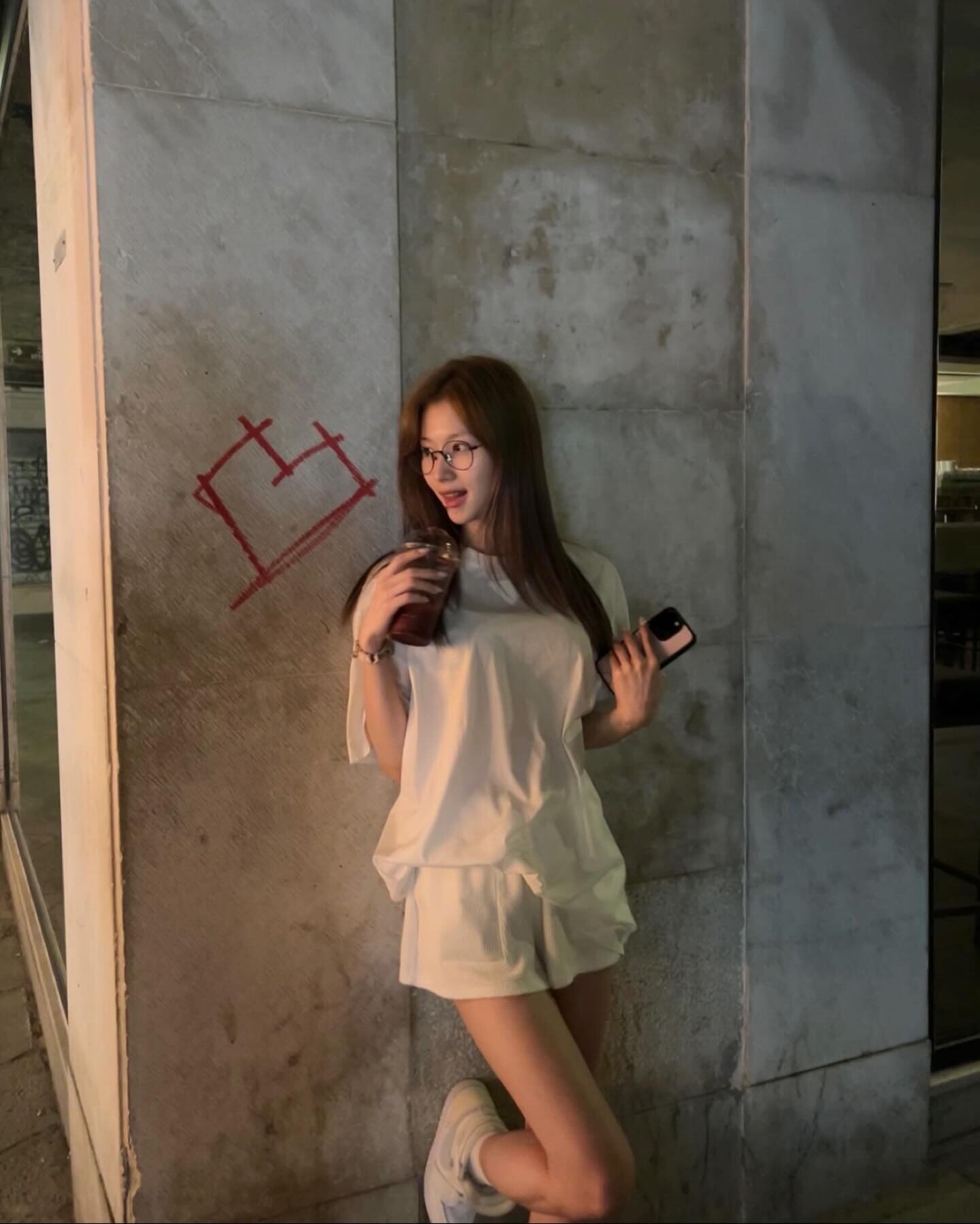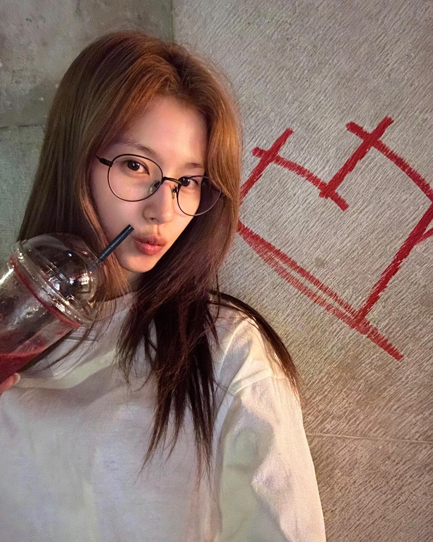 In the released photo, Sana poses with a takeout cup of smoothies.