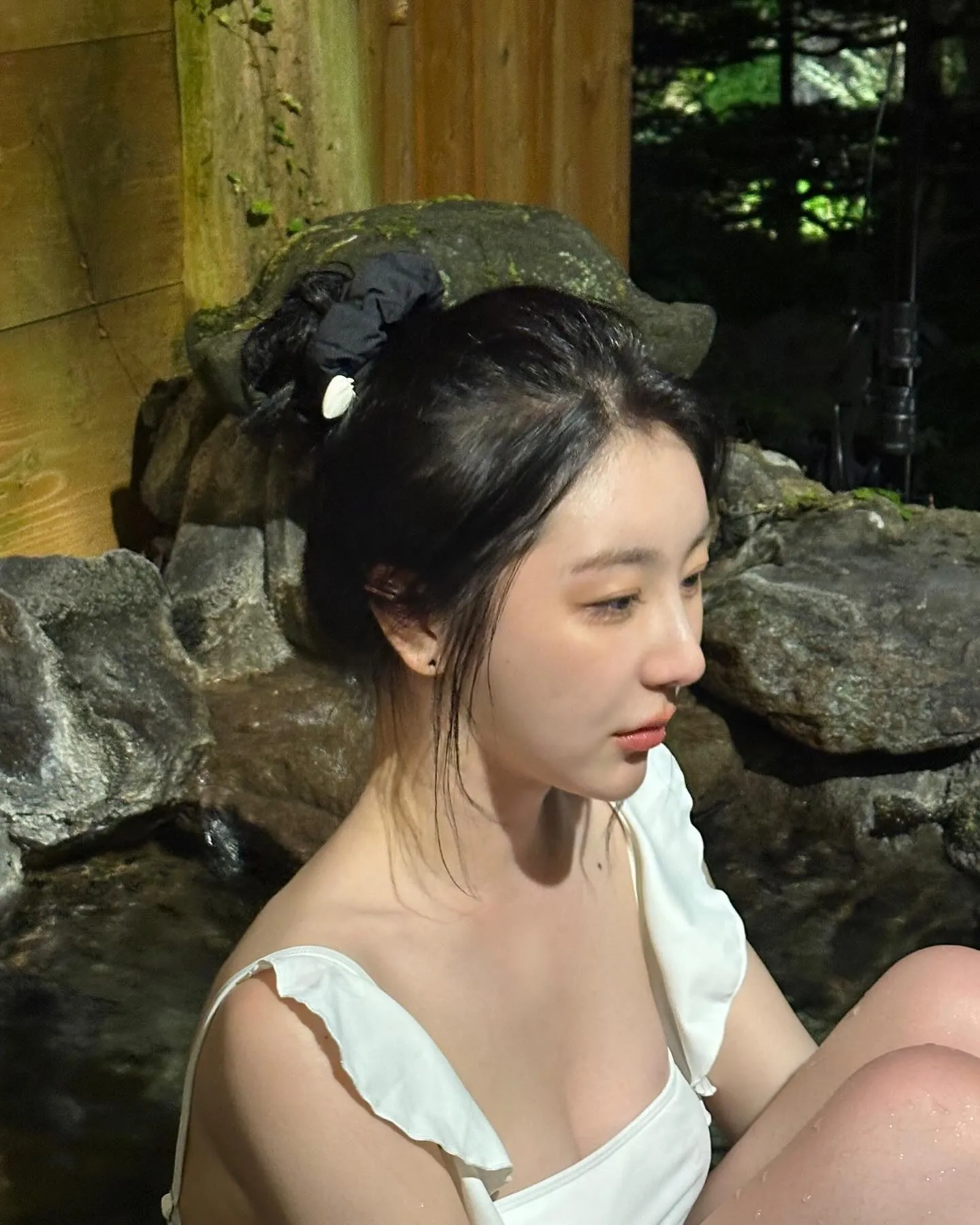LEE CHAEYEON recently shared a photo that she took in Japan on her Instagram. The photo shows her enjoying hot spring in a white monokini. She showed off her unexpected charm by showing off her slim body line, firm back muscles, and healthy beauty.