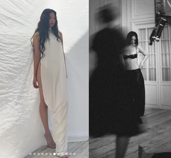 The photo released shows Jennie’s photo shoot and the behind-the-scenes cut. Jennie shows off her perfect pull by showing off her colorful styling including short hair. In particular, Jennie draws attention by showing off her pantsless look, wearing a bra top with full volume and slim body, and showing off her sexy charm.