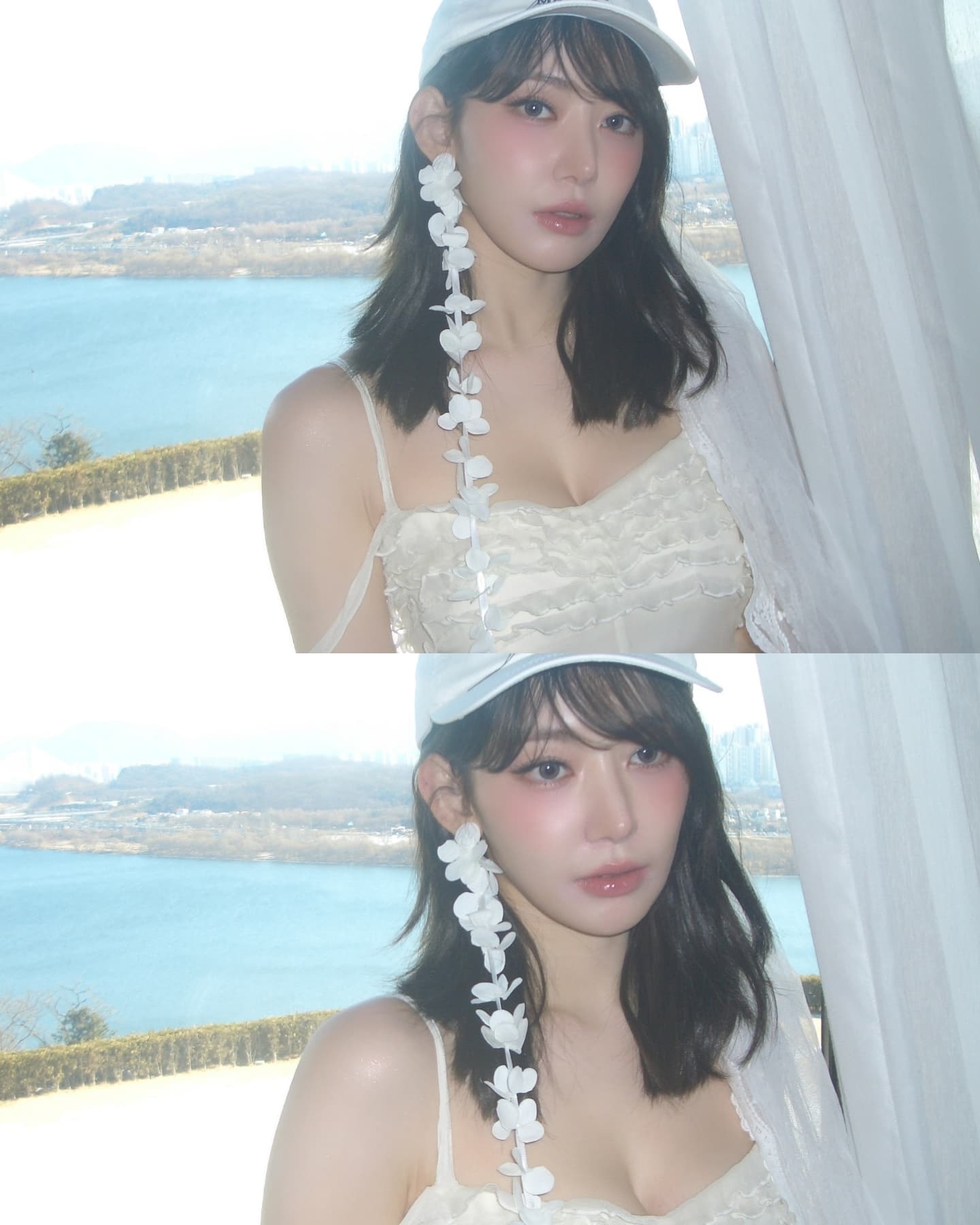 In the first photo, she paired a black jacket with a white crop top to show off her sophisticated and chic charm. In particular, she stood out with her distinct features and mature beauty. In the following photo, she wore a lovely beige dress with a hat and stared at the camera, showing off her innocent yet lovely charm.
