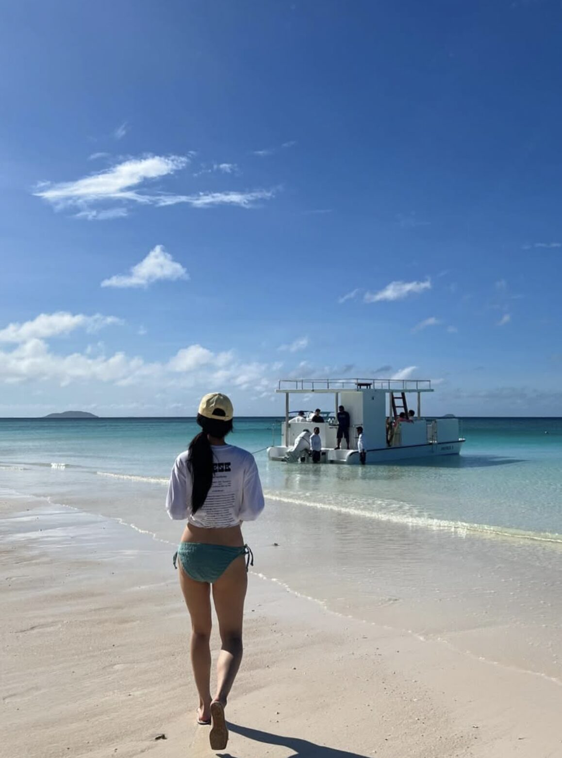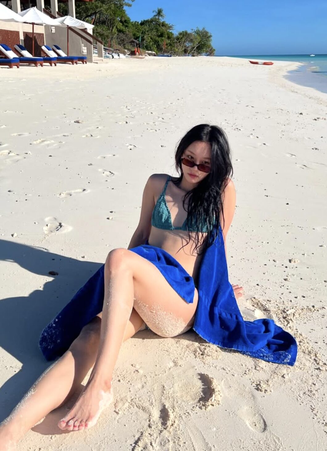 On January 15, actress and idol Hyeri posted beach photos from her vacation in the Philippines. In some photos, she wore a seafoam string bikini while hanging out on a yacht.