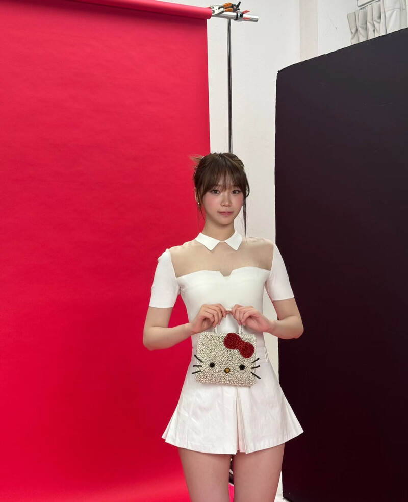 In another photo, a yellow stripe T-shirt with shiny silver bags and colorful decorative items added freshness. One-piece dresses using white see-through tops also attracted attention. The combination of subtle materials and neat designs created an innocent yet trendy mood, and a cute Hello Kitty character bag was added to it.