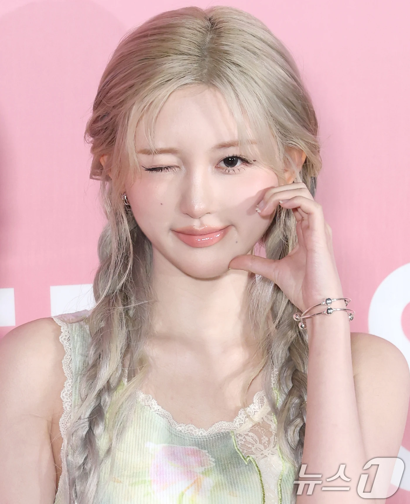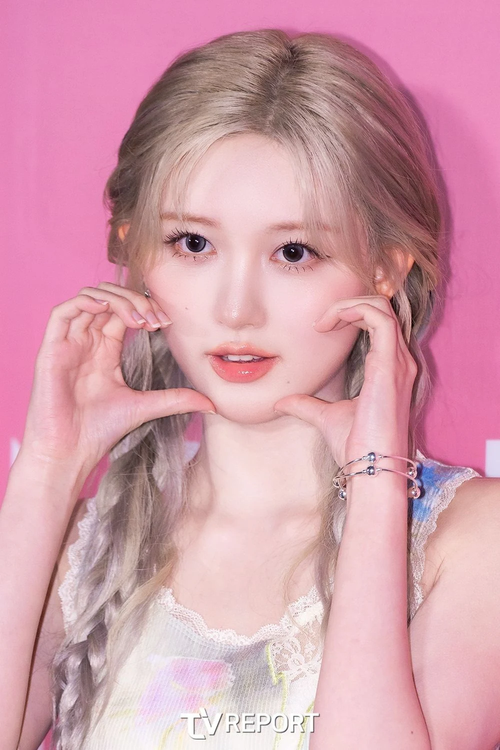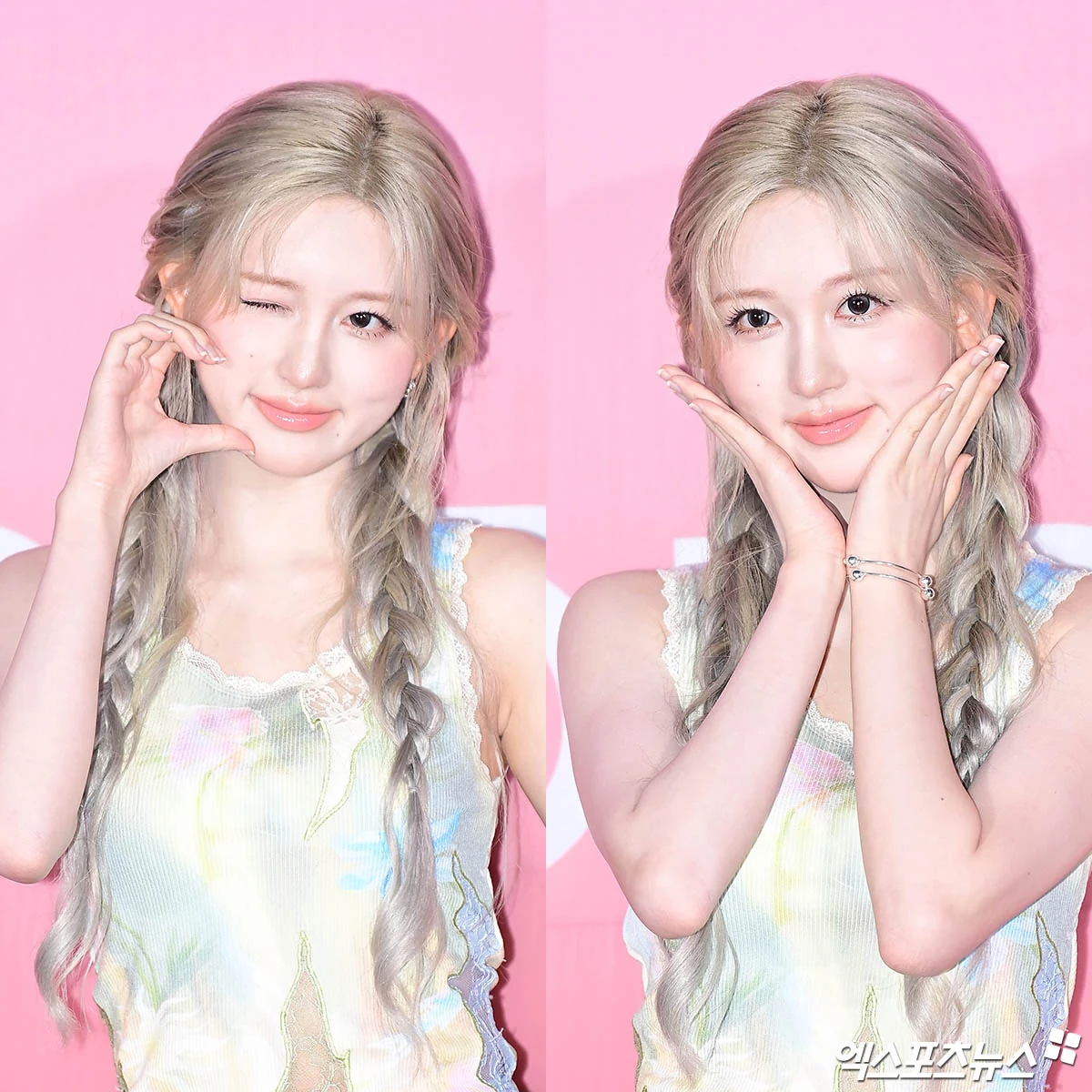 IVE‘s Gaeul, who attended the photo wall event, is posing.