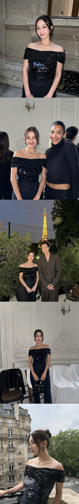 The released photos show Jihyo attending the AMI – Alexandre Mattiussi Men’s 2025 Spring/Summer show in Paris, France. Jihyo wore an off-shoulder top that revealed her shoulder line, flaunting her exceptional figure. Her small face, well-defined features, and strong physique drew the viewers’ attention.