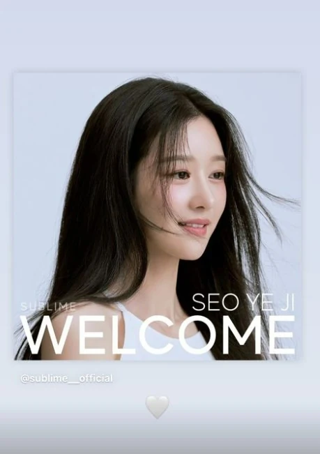 On June 25th, Sublime announced the signing of their exclusive contract with actress Seo Ye-ji by releasing a new profile picture of the actress with the message, “WELCOME TO SUBLIME. We sincerely welcome actress Seo Ye-ji to Sublime”.