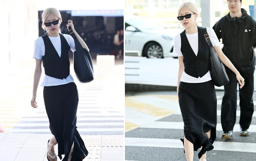 Earlier, Rosé was spotted at Incheon Airport (South Korea) en route to France. She wore a gray blazer over a white T-shirt, paired with a long skirt, and embraced the summer trend with sandals.