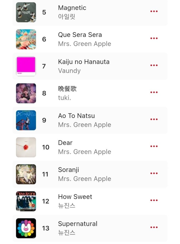 It seems that despite it having been 4 months since the release of “Magnetic”, the song is still charting higher than NewJeans’ newer tracks on one of the most popular music platforms in Japan.