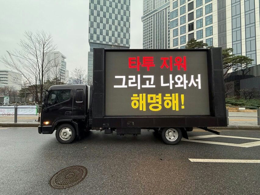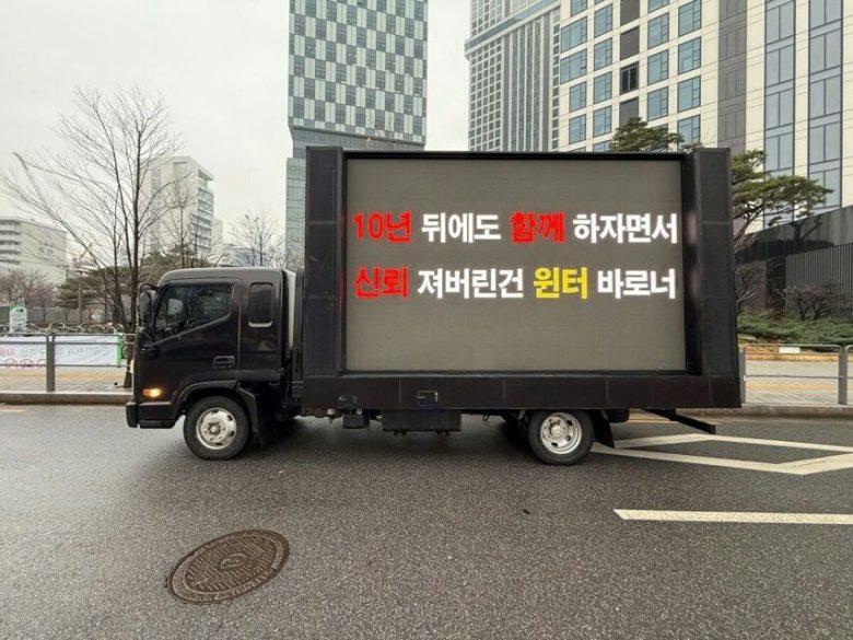 Shortly after Jungkook’s fans sent protest trucks to HYBE, Winter’s fans followed suit by sending their own trucks to SM Entertainment, demanding that the company address the growing speculation. The messages displayed on the LED screens condemned the agency’s silence and expressed frustration toward Winter herself.