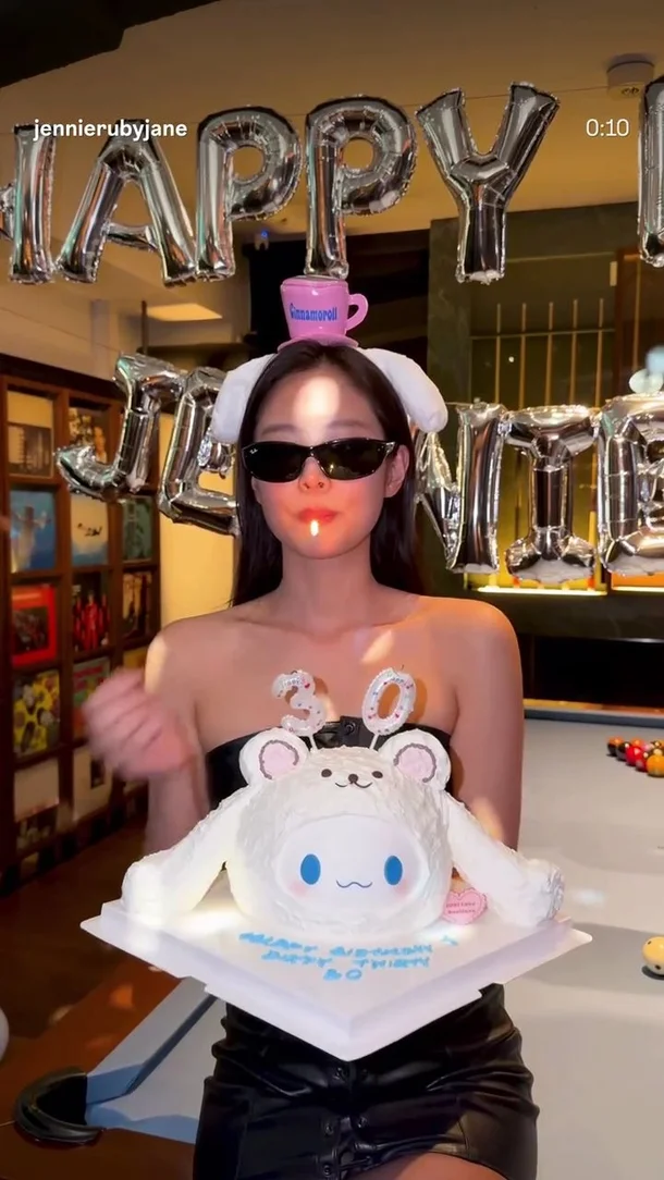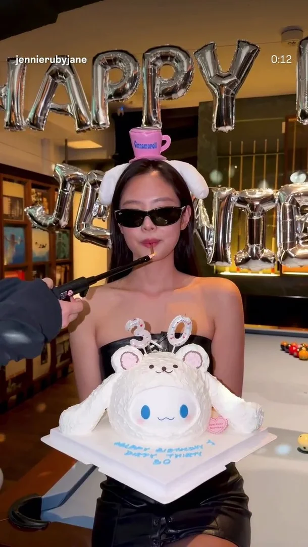 Jennie posted a short video celebrating her 30th birthday on her social media account on the 16th. In the video, Jennie holds a cake, then dons sunglasses and a character headband, which friends give her. She then has a long birthday candle in her mouth and lights it with a torch. She then places the candle in the cake and blows it out, sending smoke flying toward the camera. Jennie then removes her sunglasses and beams at the camera, seemingly revelling in her joy.