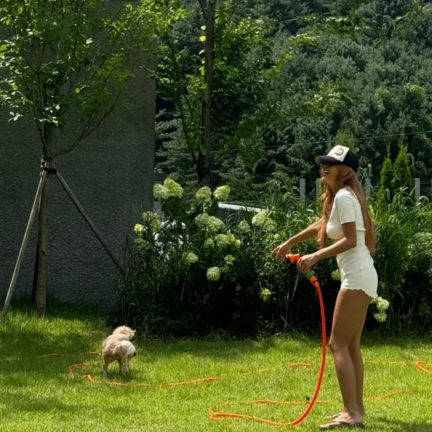 Hwasa’s face, smiling brightly like a child while playing in the water in the yard, shows the true “healing” given by time with her poop nose.