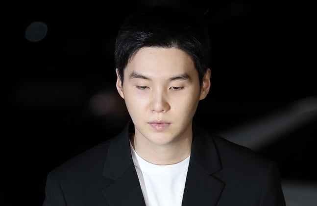 Suga arrived at Yongsan Police Station in Seoul at 7:47 p.m. on…
